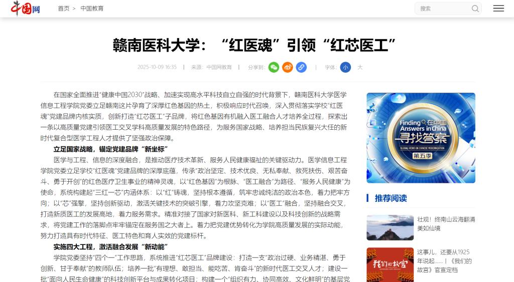 赣南医科大学:“红医魂”引领“红芯医工”_中国网