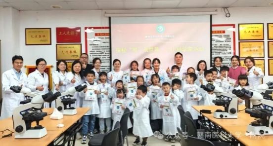 针对青少年群体特点设计的“小小检验科学家”体验环节,成为本次开放日的一大亮点。穿上迷你白大褂的小学生们化身“小检验师”,在党员导师的手把手指导下,孩子们初识“科学之眼”:认识显微镜、观察人体染色体与血液细胞玻片,亲手采集口腔上皮细胞制作涂片,沉浸式探索微观世界。卫生小课堂上,密封培养皿中的细菌菌落直观展现卫生习惯的重要性,趣味洗手比赛让“七步洗手法”深入人心。