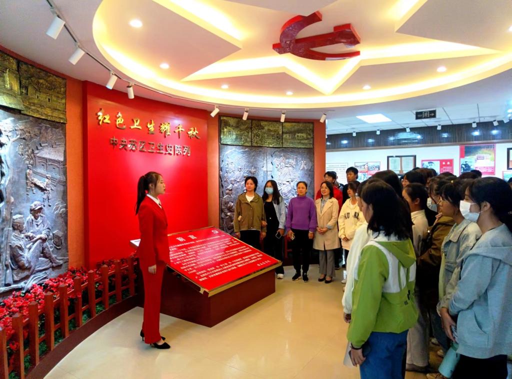 实践是检验真理的唯一标准,也是育人的重要环节,“我们每年都会实施‘红医班级’创建、‘红医学校’培训等活动。在红色卫生史博物馆向全体新生开展入学教育‘第一课’,不定期开展‘寻访红医足迹,弘扬红医精神’学生骨干创新训练营等活动,让学生们在实践中体悟红医文化,提升综合职业技能素养。”曾新华介绍,每年在中央红色医院旧址等校外思政教育实践基地,学生们身着红军装、重走挑药路,在沉浸式体验中感悟红医精神,同时通过设计便携药箱、开展乡村健康课堂实践的“小药箱”公益项目,已累计服务10万余名村民;一些“红医班”定期深入社区,为居民传授心肺复苏技能和健康常识,深受好评。