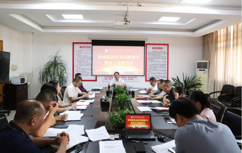 9月15日下午,二附院召开医德医风有关问题集中整治工作推进会暨监督推动落实会(第一次)。该院党委书记钟秋明主持会议并讲话,集中整治工作领导小组全体成员参加会议。