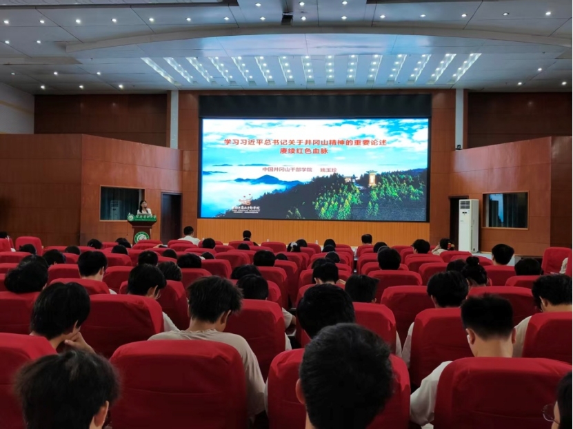 姚玉珍紧扣习近平总书记关于井冈山精神的重要论述,深刻解读井冈山精神所蕴含的“坚定信念、艰苦奋斗、实事求是、敢闯新路、依靠群众、勇于胜利”的核心要义,呼吁广大青年大学生必须把握时代机遇,以只争朝夕的奋斗精神,与时代同步伐、与历史共前行,朝着中华民族伟大复兴的宏伟目标奋勇前进。整场报告脉络清晰、情理交融,既有思想深度,又有历史厚度,通过鲜活的故事与深情的讲述,使崇高精神可感可触,引发师生强烈共鸣,现场反响热烈。