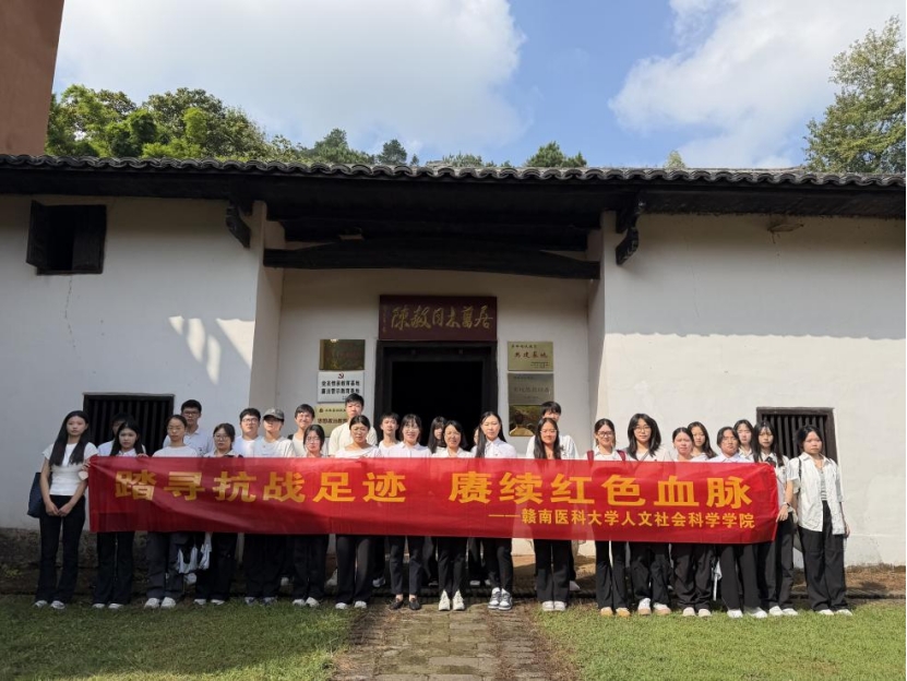 为传承红色基因、弘扬伟大抗战精神,9月27日,人文社会科学学院党委副书记毛磊焱和青年赞红医班班主任周佳阅带领班级学生党员、团员,前往大余县开展“踏寻抗战足迹,赓续红色血脉”党建带团建活动。