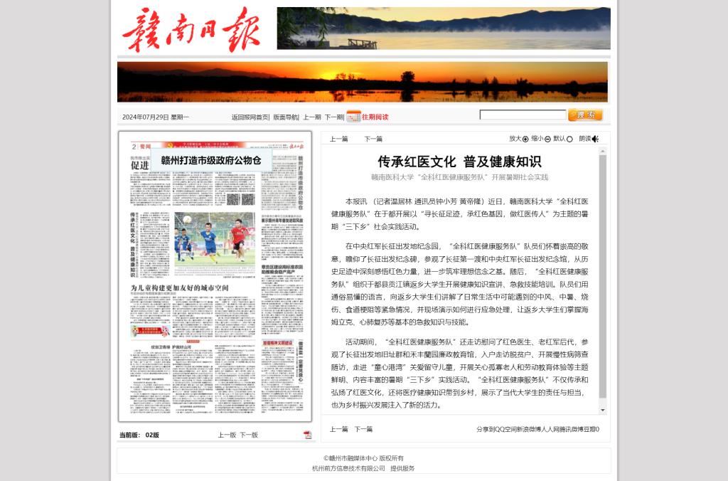近日,赣南医科大学“全科红医健康服务队”在于都开展以“寻长征足迹,承红色基因,做红医传人”为主题的暑期“三下乡”社会实践活动。