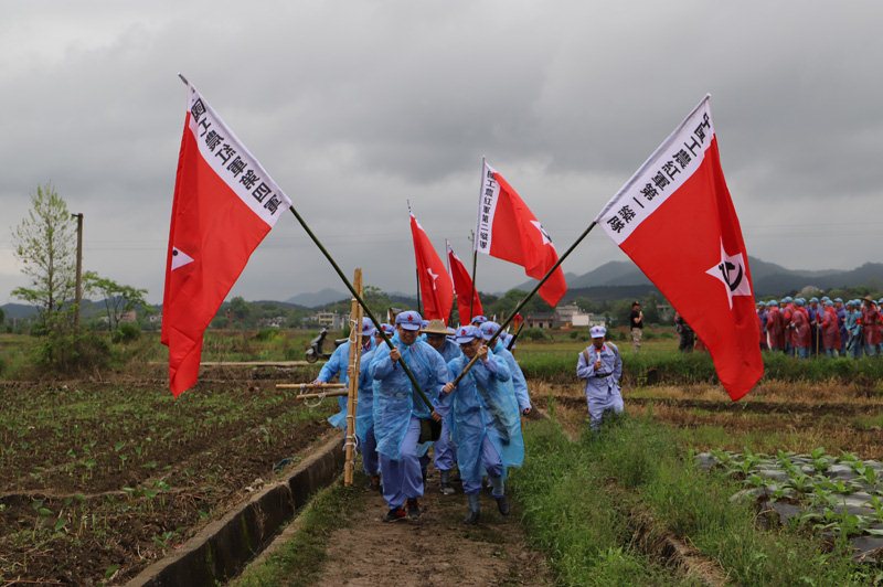 在前往瑞金途中,学员们分组高歌《十送红军》《毛委员和我们在一起》等红歌;在华屋红军村,学员们参观新旧华屋村和村史馆,在村民家同吃同住同劳动,感受改革开放给乡村带来的巨大变化。