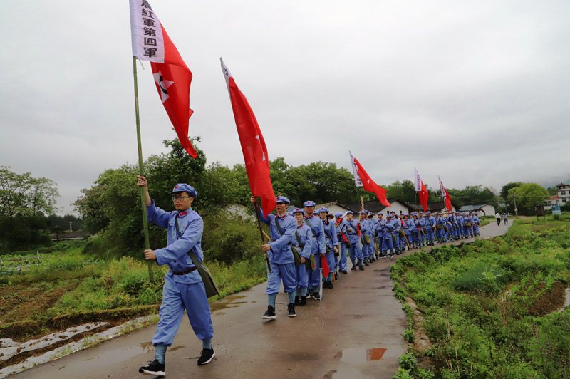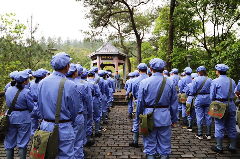 在红军广场烈士纪念塔前,全体学员冒雨列队,向革命先烈默哀致敬、敬献花篮,面对党旗重温入党誓词;在“一苏大”旧址,参与预演选举,高唱《国际歌》;在红井边,尝一尝红井水,缅怀伟大领袖毛泽东。在马道口“长征第一村”,学员们身穿红军服,开展队列训练,颂读《红色家书》,喝一口壮行酒,出发重走长征路,随后模拟闯关夺隘、抢救伤员、爬雪山过草地、飞夺泸定桥······将仪式教学和体验教学相结合,深入体会长征精神。