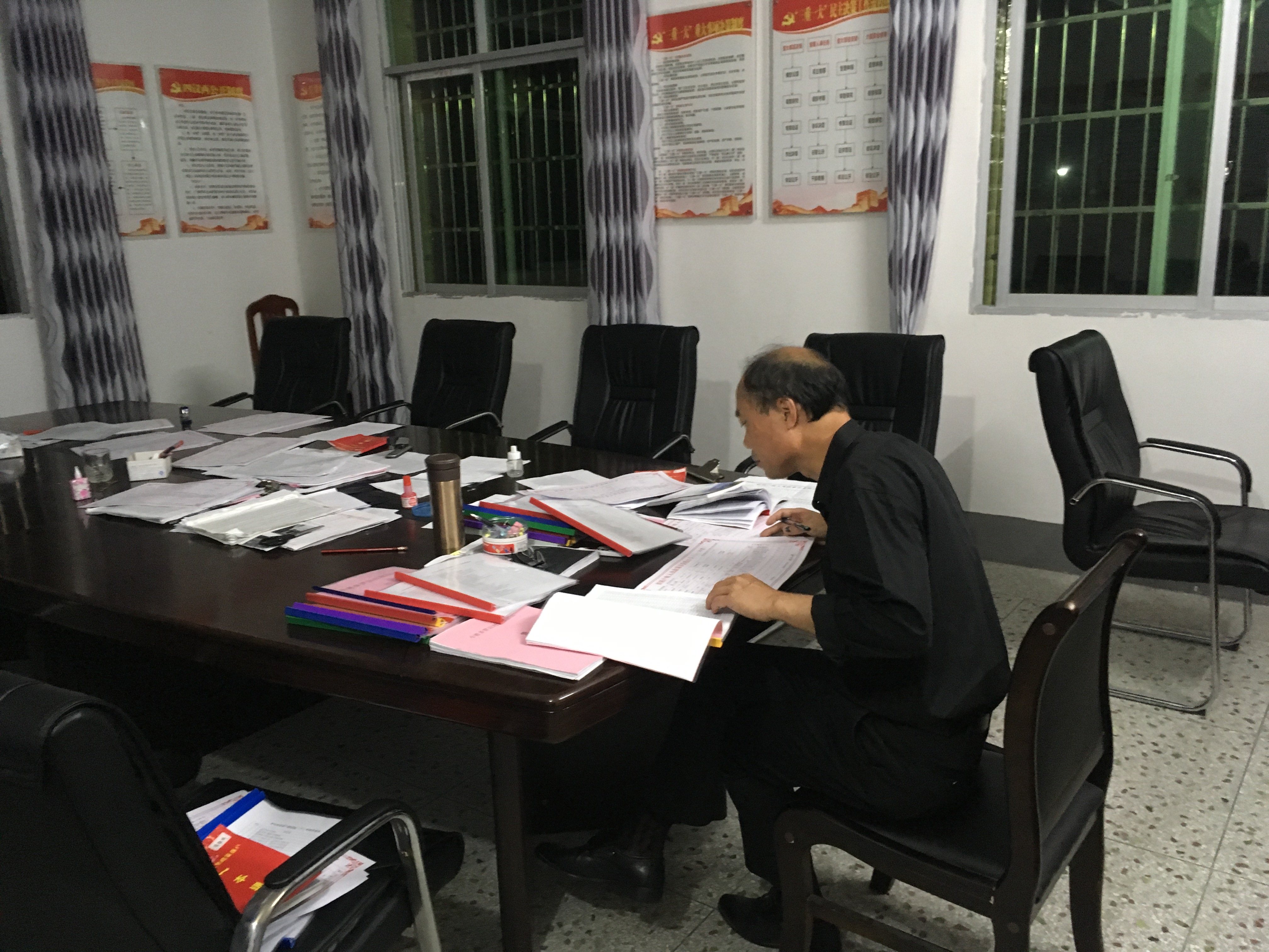 他的一位队员曾偷偷拍下他在2018年4月12日深夜加班工作的照片,并在朋友圈写了这么一段文字——《为他的敬业精神点赞(2018年4月12)》。“从外面帮贫困户赖十月家办完事回来已经晚上十一点多,发现吴小明书记还在为工作忙碌。近期一段时间高强度的工作已经让他腰间盘旧伤复发,至今还行走有些难受,而这丝毫没有影响其忘我地工作。为吴小明书记的敬业精神点赞。”