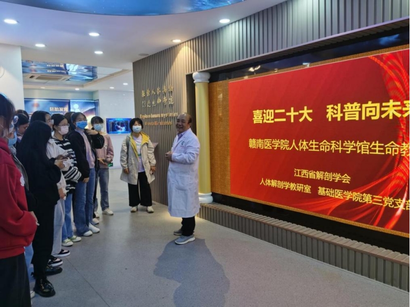 为普及生命健康知识,助力健康中国发展战略,学院搭建了赣南医科大学人体生命科学馆这个平台。建立了师生共同组成的志愿者管理组织和专业科普讲解员队伍,让大学生在志愿服务中传承红医文化、锤炼为人民服务的情怀。2014年以来连续举办了德技杯“医生艺事”人体解剖学绘画大赛,收到412件作品,其中优秀作品171件,比赛得到《人民日报》、新浪网、新华网等官方微博以及江西卫视等媒体广泛报道。人体生命科学馆作为健康科普教育基地,免费面向社会公众开放,打开无形的围墙,与社会共享学校校园资源,服务社会,医教结合,普及人体科学和疾病防治知识,致力于促进医学教育和全民健康。开馆以来,先后接待了省部级、市级领导、院士等重量级人物,对外接待了机关企事业单位、大中小学学生百余批次,参观人数达5万余人次,取得了良好社会反响。人体生命科学馆先后获批为江西省少先队校外实践教育基地、赣州市中小学示范性综合实践活动校外基地,获得江西省大中小幼劳动教育典型案例二等奖。