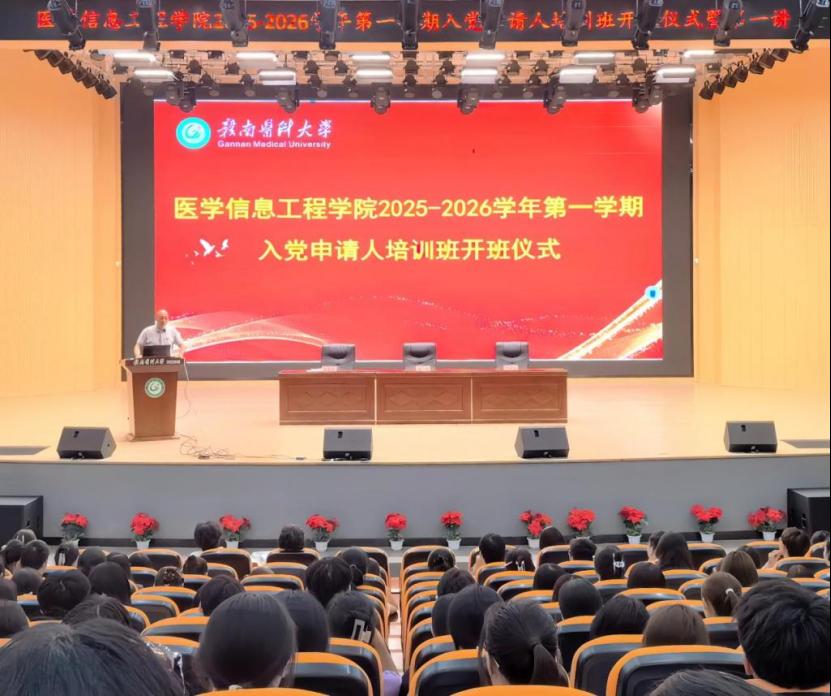9月25日,医学信息工程学院在龙南校区举行入党申请人培训班开班仪式暨集中授课第一讲。该院党委书记唐明主讲,辅导员陈君伟主持开班仪式,学工办辅导员及近200名入党申请人参加。
