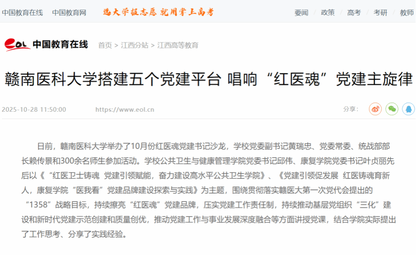 赣南医科大学搭建五个党建平台 唱响“红医魂”党建主旋律 —江西站—中国教育在线