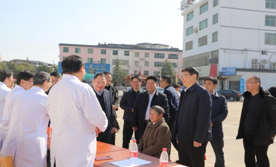 (图为学校党委常委、副校长黄孝天组织一附院医疗专家到乡村振兴帮扶点开展义诊活动)
