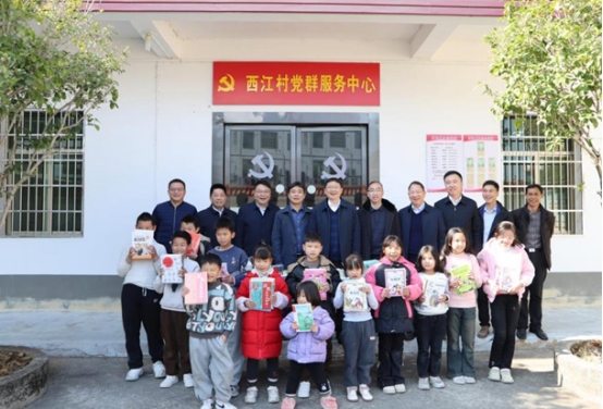 (图为学校党委书记 校长张小康一行到乡村振兴帮扶点举行童心港湾图书捐赠仪式)