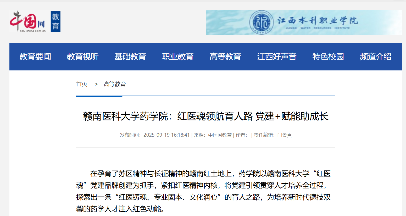 中国网原文:赣南医科大学药学院:红医魂领航育人路 党建+赋能助成长
