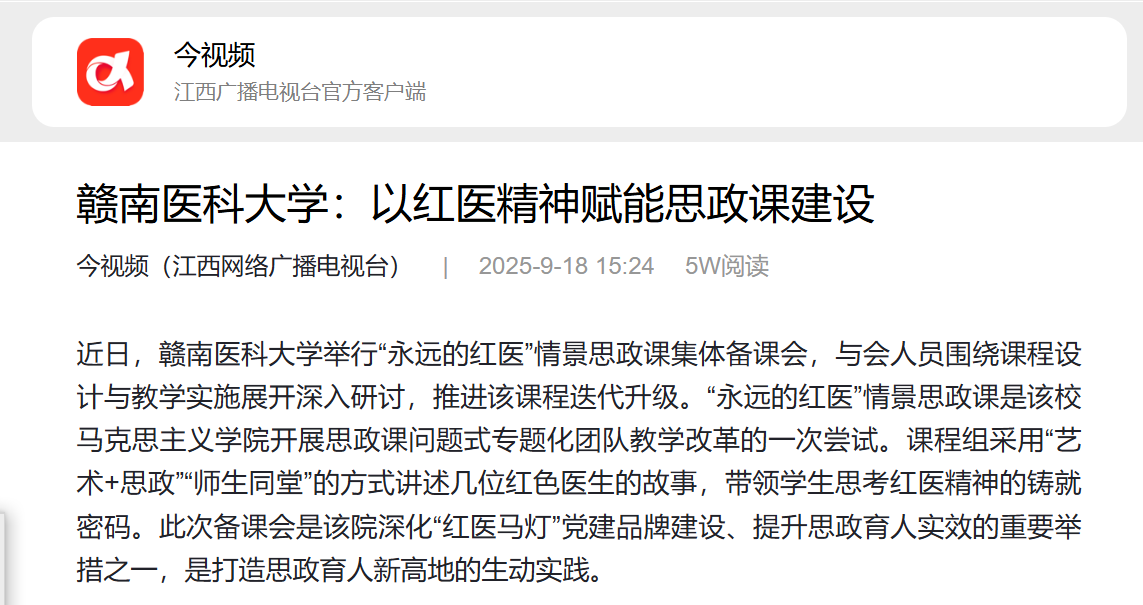 赣南医科大学:以红医精神赋能思政课建设 - 今视频