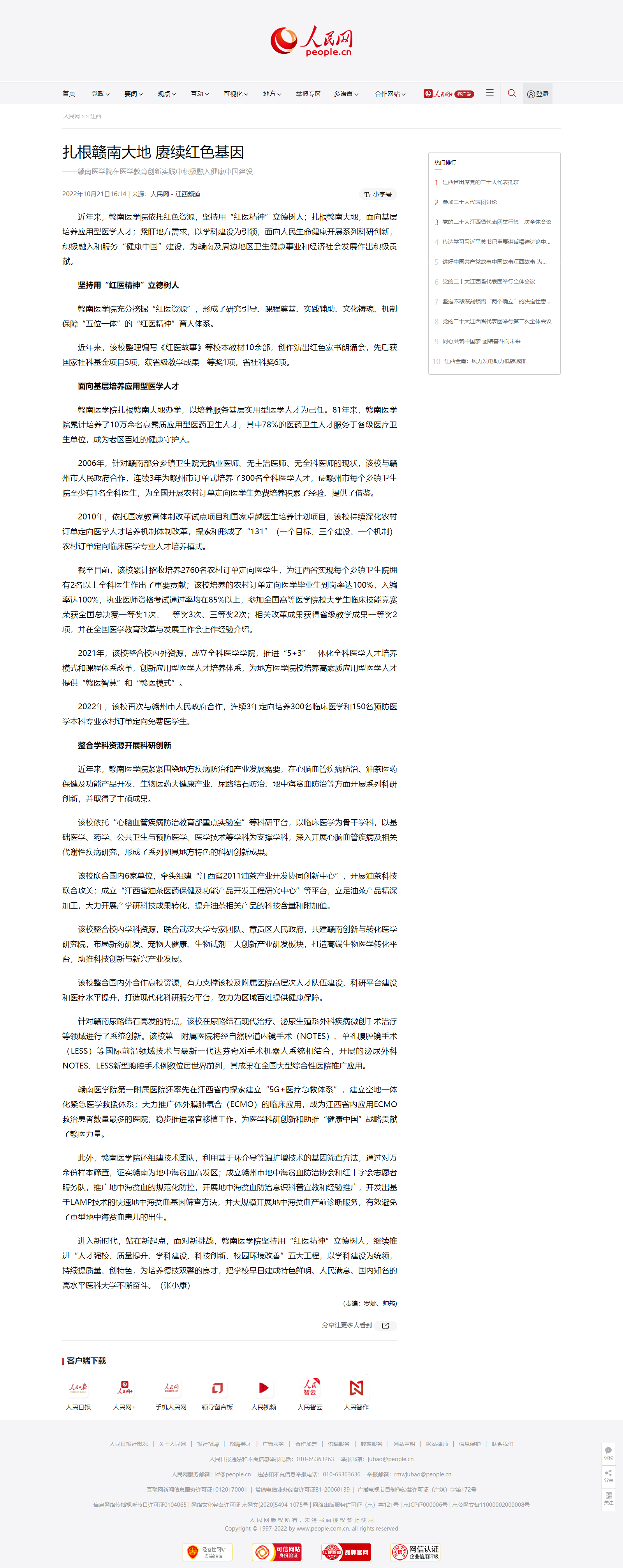 文章作者:学校党委副书记、校长 张小康 发布时间:2022年11月22日 消息来源:媒体赣医