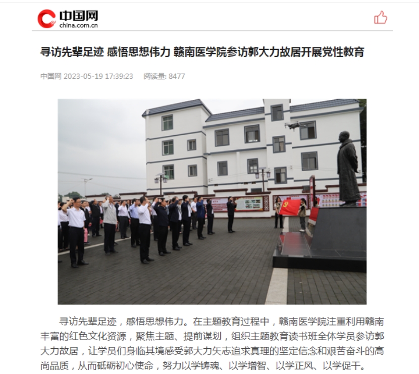 中国网:寻访先辈足迹 感悟思想伟力 赣南医学院参访郭大力故居开展党性教育