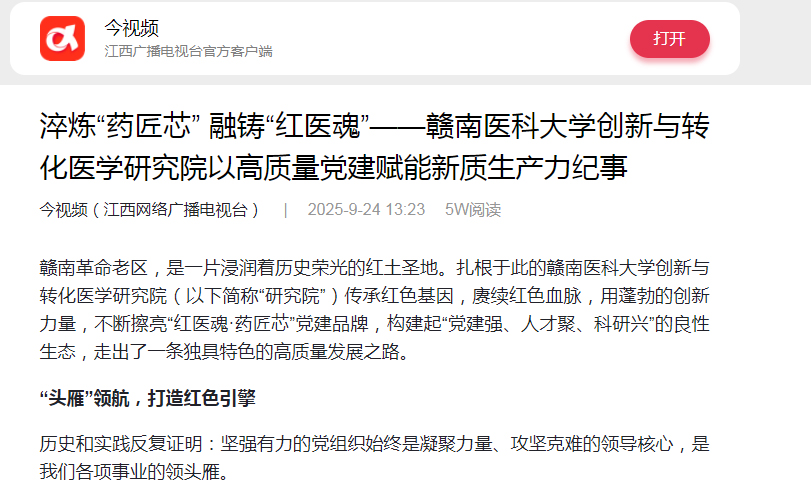 淬炼“药匠芯” 融铸“红医魂”——赣南医科大学创新与转化医学研究院以高质量党建赋能新质生产力纪事 - 今视频