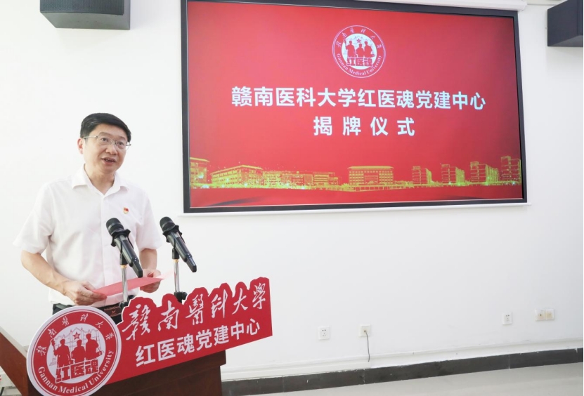 黄瑞忠在主持仪式时强调,红医魂党建中心启用是学校加强党对教育工作的全面领导、深化红医文化育人的重要举措,既是对红医精神的传承与弘扬,也是拓展党建育人阵地的重要途径。全校各级党组织要以中心启用为抓手,深入落实《赣南医科大学“红医魂”党建品牌创建实施方案》,用好阵地资源、深化精神传承,推动党建与育人工作深度融合,切实培养更多又红又专的红医传人。