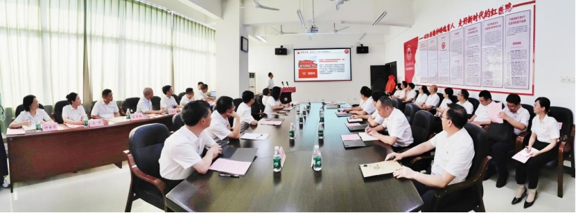 与会领导和师生代表共同观看了红医魂党建中心简介PPT,并合影留念。
