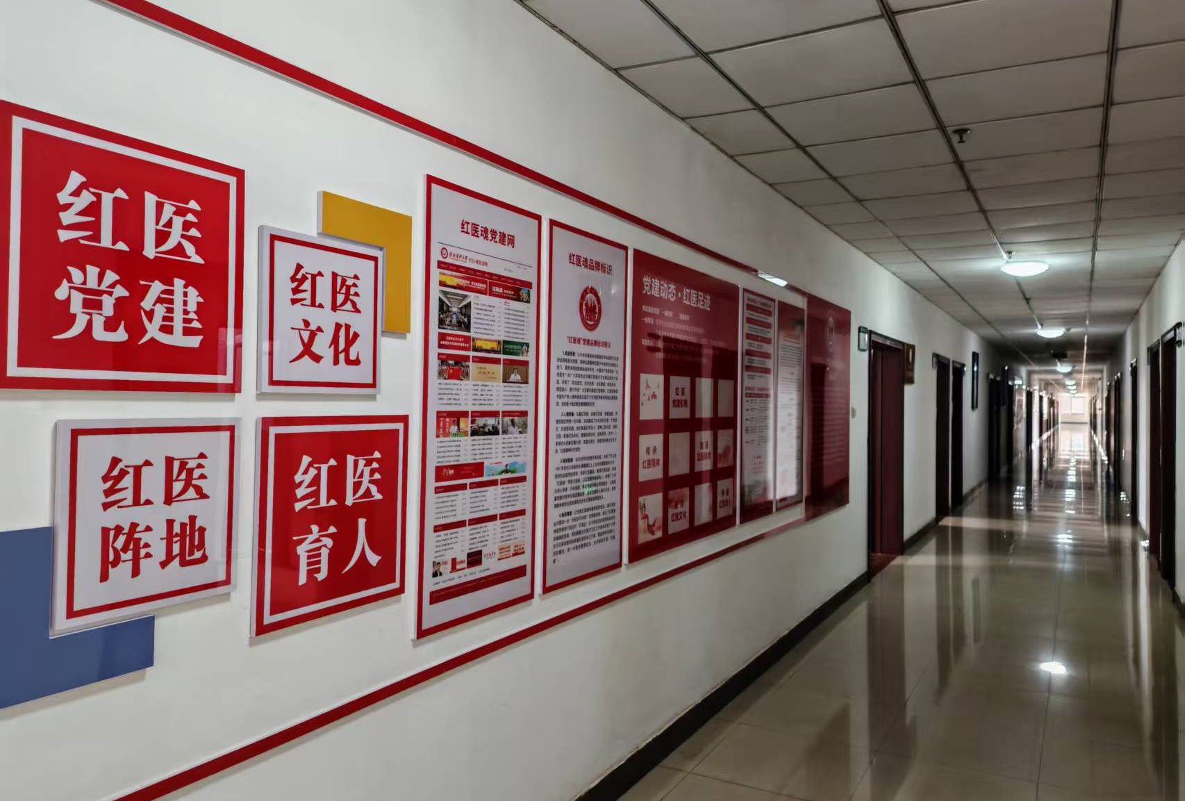 为加强党建工作阵地建设,学校精心打造了“赣南医科大学红医魂党建中心”,地址在蓉江校区综合办公楼4楼,主要用于开展红医党建研究、红医精神传承、红医文化展示、基层党支部“三会一课”和党员党性教育等工作,旨在打造集会议、活动、教育、宣传、服务等功能于一体的党建综合体。